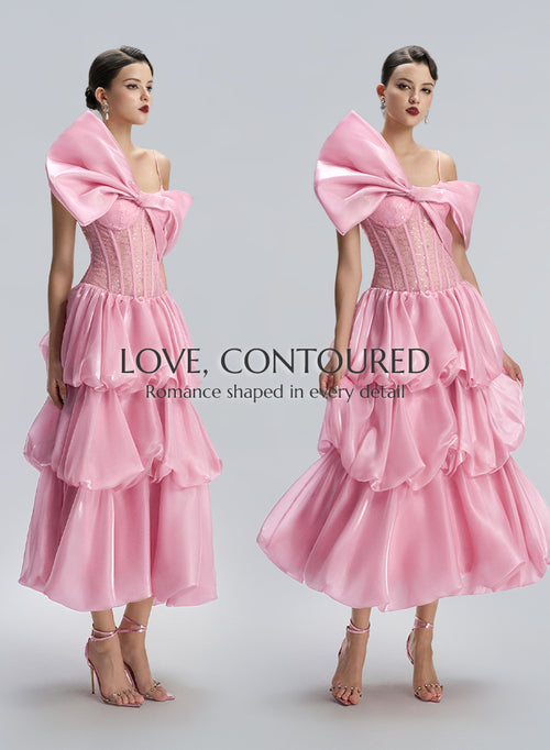 Young girl and adult in a pink dress posing against a plain background Mommy and daughter in pink dresses holding hands against a neutral background