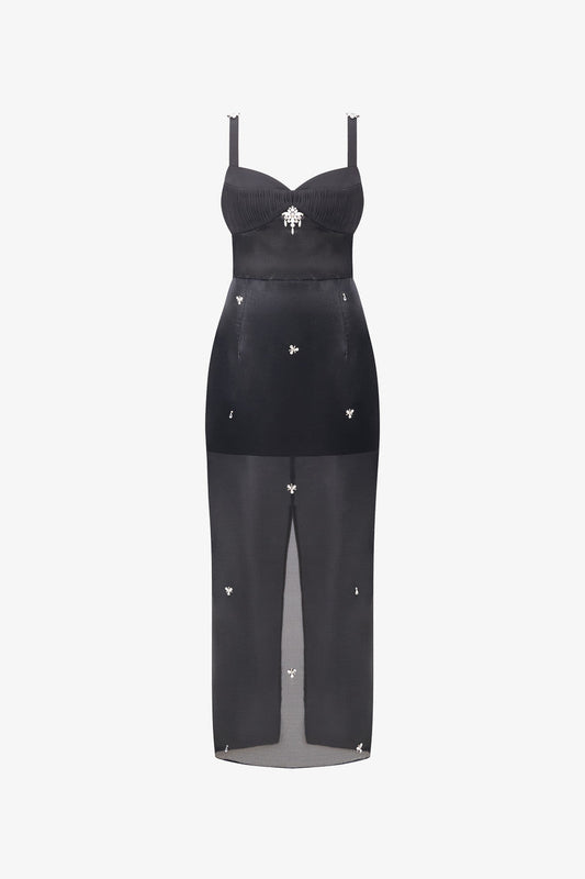 Confection Couture Corset Fluffy Maxi Dress With Oversized Bow