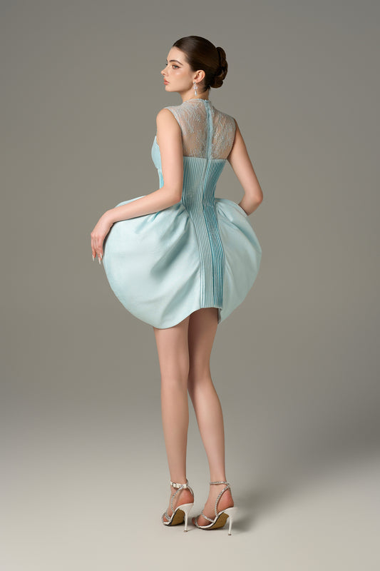 فستان قصير من Sage بفتحة على شكل قلب وحافة منفوخة