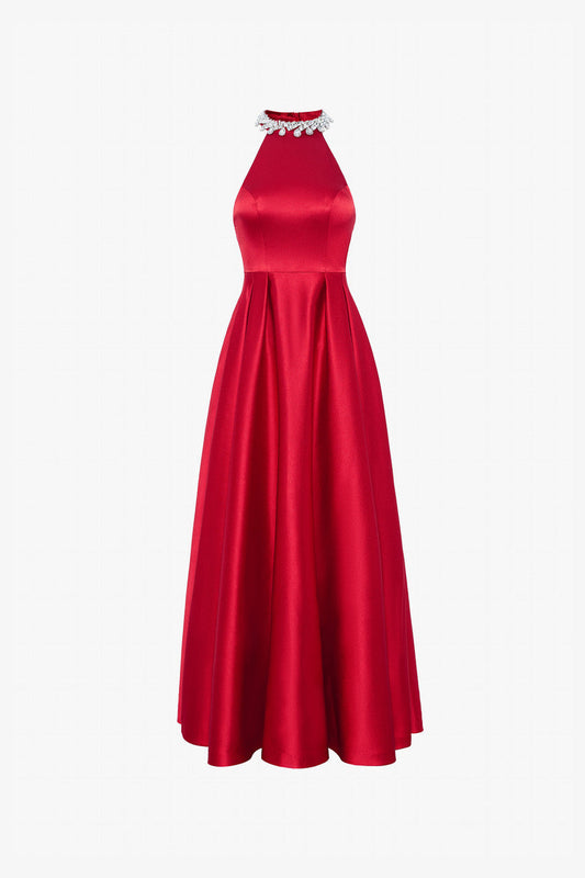 فستان حريري مزين بكريستال الكنز مع رقبة على شكل هالتر