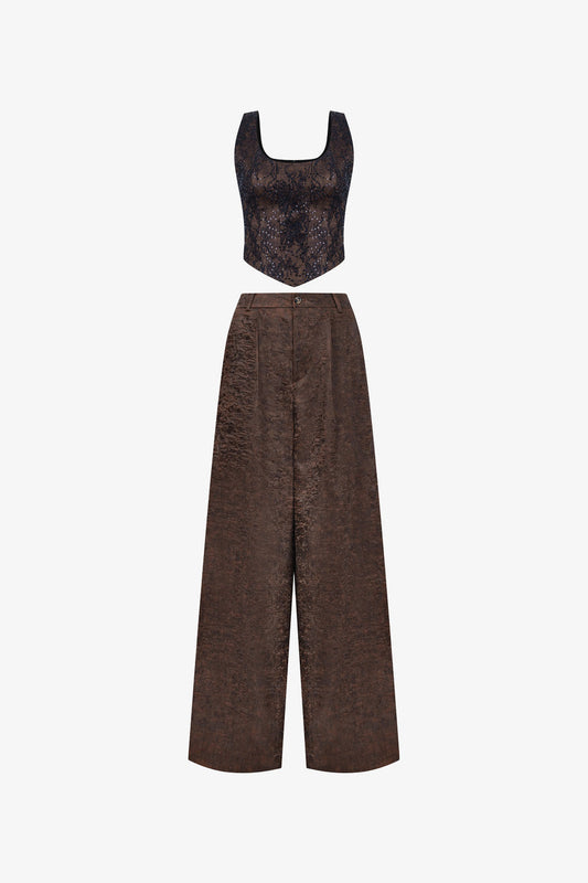 طقم توب كورسيه تومبوي وبنطال واسع الساق