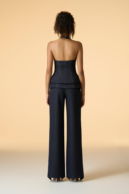 طقم كورسيه من فورج بفتحة رقبة على شكل هالتر وبنطال بأزرار منقسم