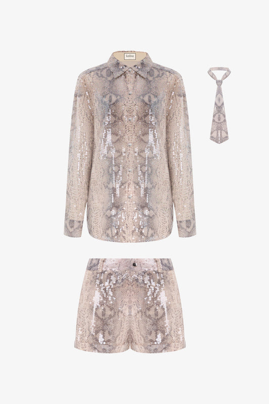 طقم قميص ترتر دوميناتريكس وبنطال قصير من جلد الثعبان