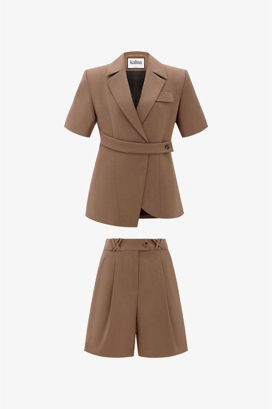 بليزر بأكمام قصيرة وبنطلون قصير بتصميم ملابس رجالية