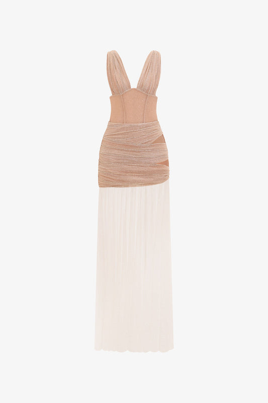 فستان ماكسي ضيق بتصميم مزدوج مع رقبة على شكل حرف V ومزين باللون الأوركيد