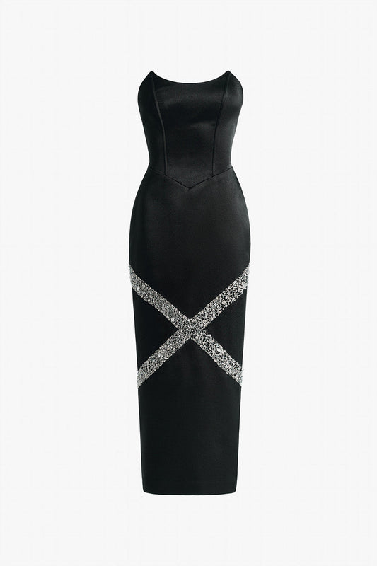 Gossamer Witch Night Bandeau Corset Cutout Maxi Dress