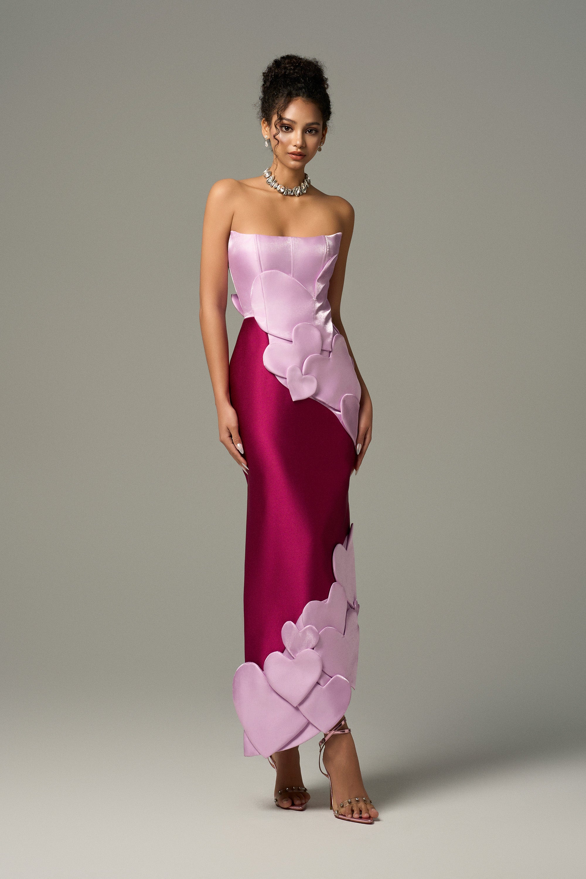 فستان ماكسي من قماش التفتا متعدد الألوان بتفاصيل قلب غير متماثلة