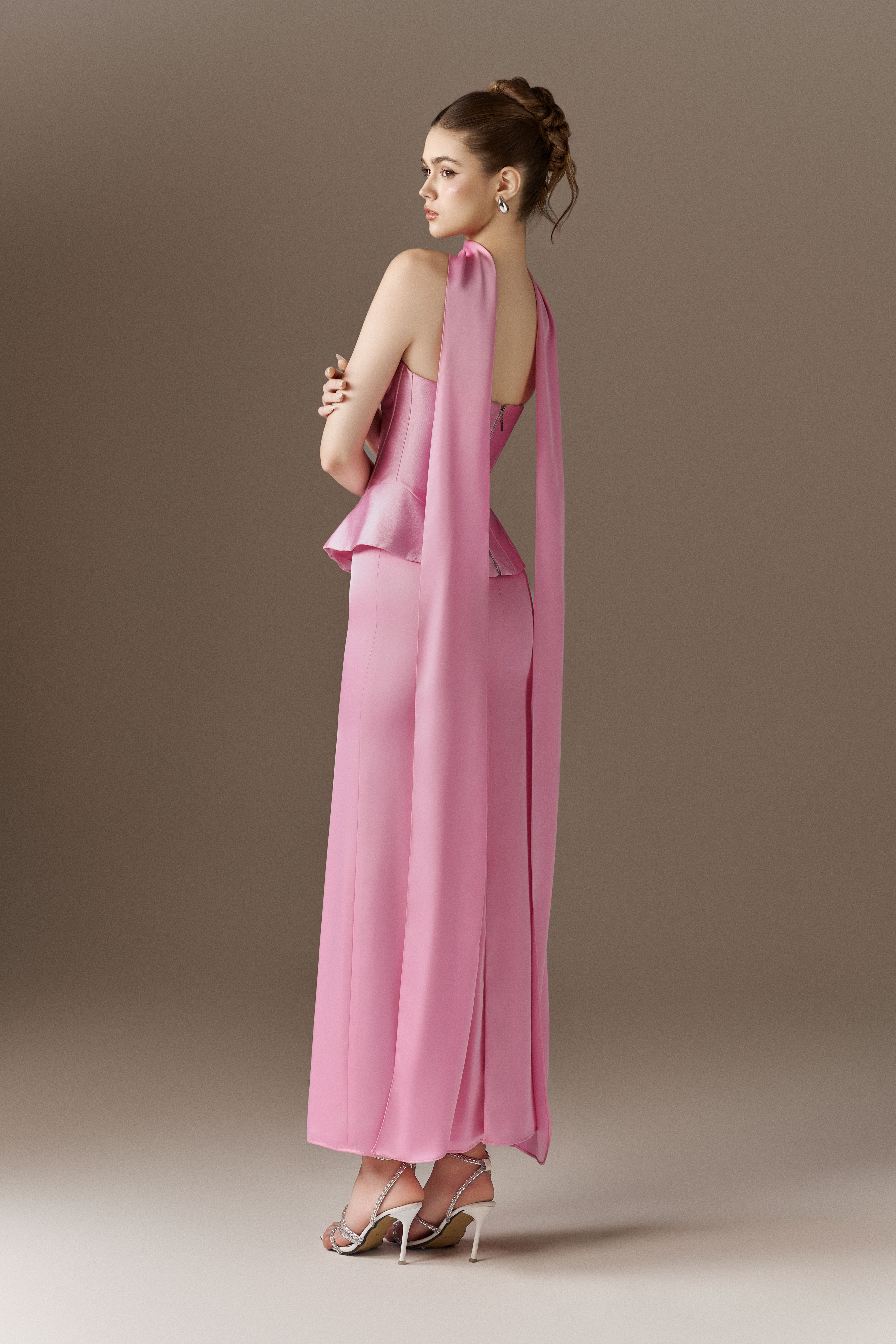 فستان كالا كورسيه بيبلوم ماكسي مع وشاح للرقبة
