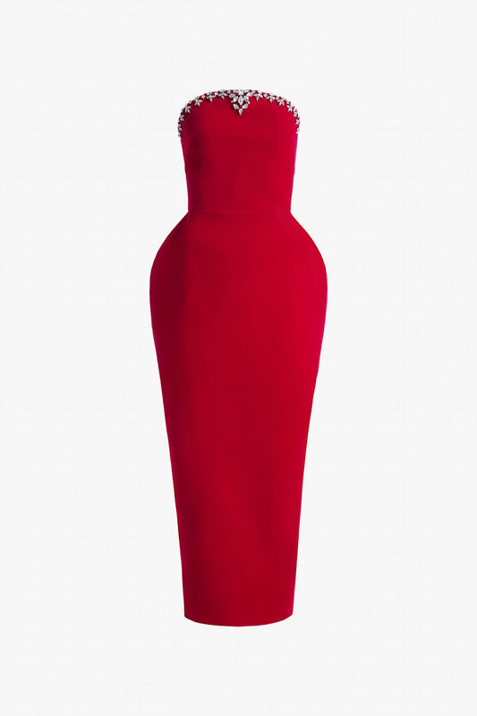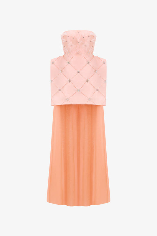 Victorian Strapless Feather & Stone Embellished Boxy Gown