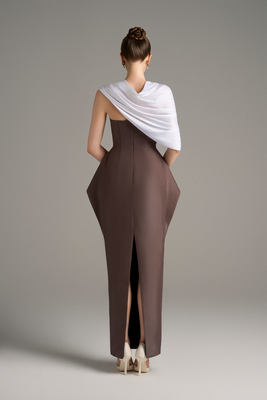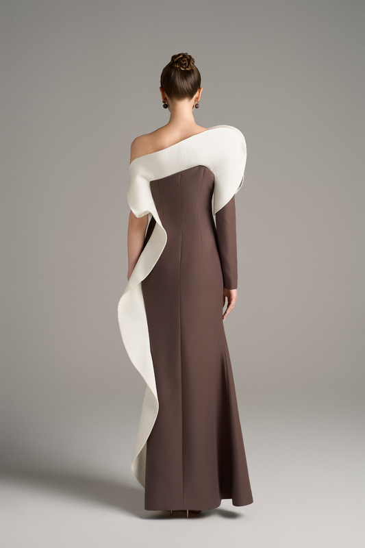Elowen 3D Floral Embellished One Shoulder Cape Silk Gown