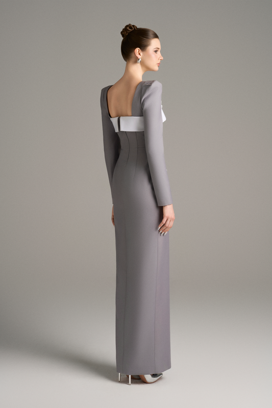 Architectural Corset Silk Velvet Gown With Scarf & Gloves