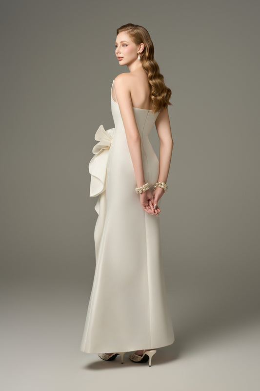 Devotion Acetate Asymmetric Neckline Gown With 3D Oversized Flower