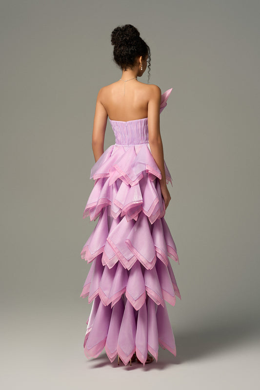 Liliana Strapless Structured Waist Details Ruffled Maxi Dress