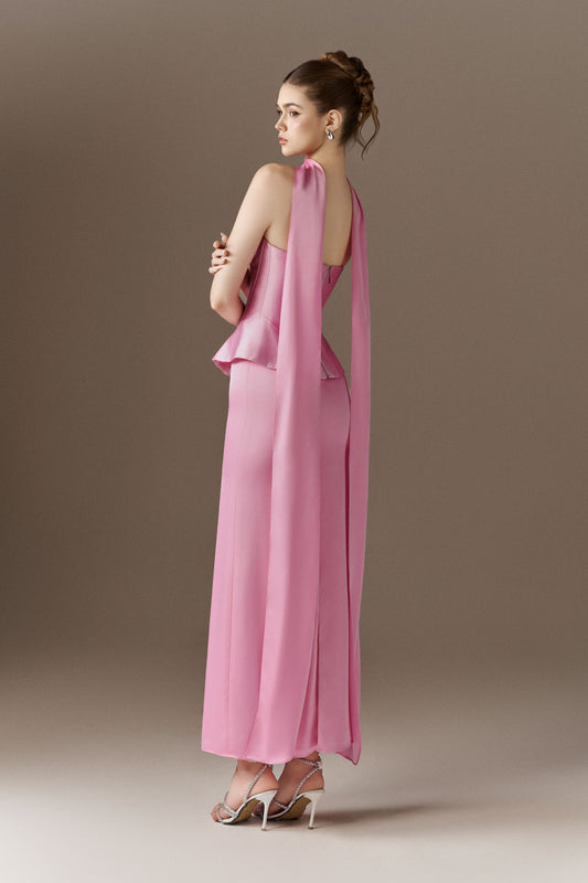 Calla Corset Peplum Maxi Dress With Neck Scarf
