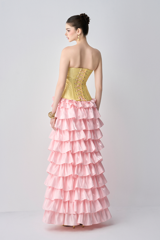 Candy Heart Shape Bust Corset Maxi Dress With Ruffle Details