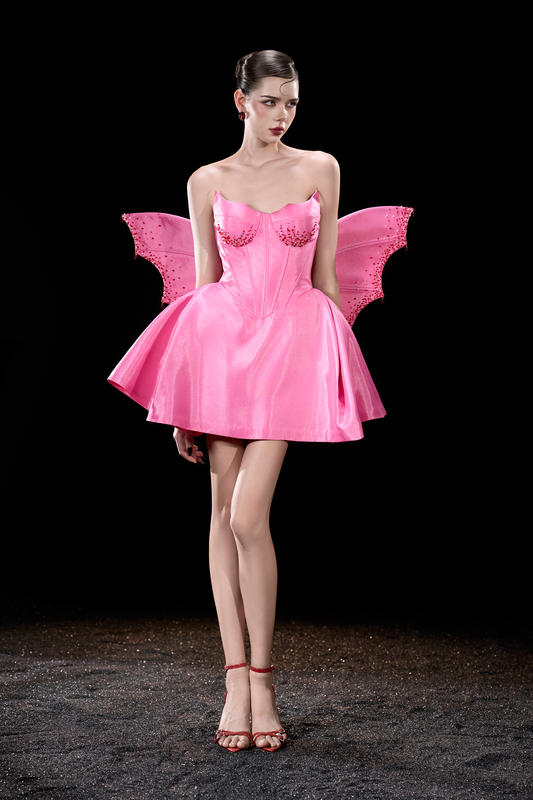 Robe mini à buste corset Fae « Petite Maléfique » ornée de cristaux