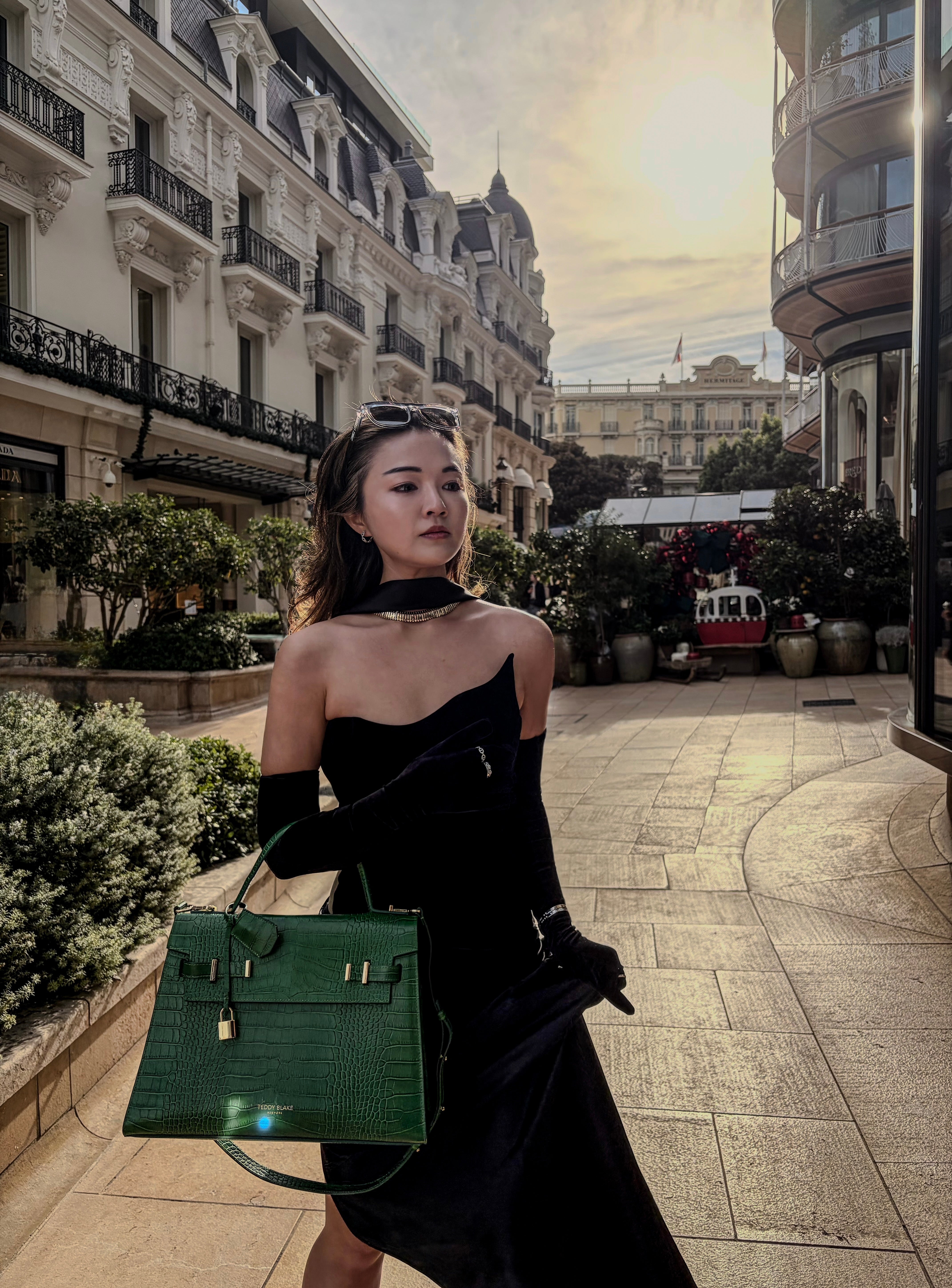 The black velvet feels so luxurious against the skin, and those subtle crystal sparkles make me shine under the lights. It’s the perfect mix of mystery and glamour.
