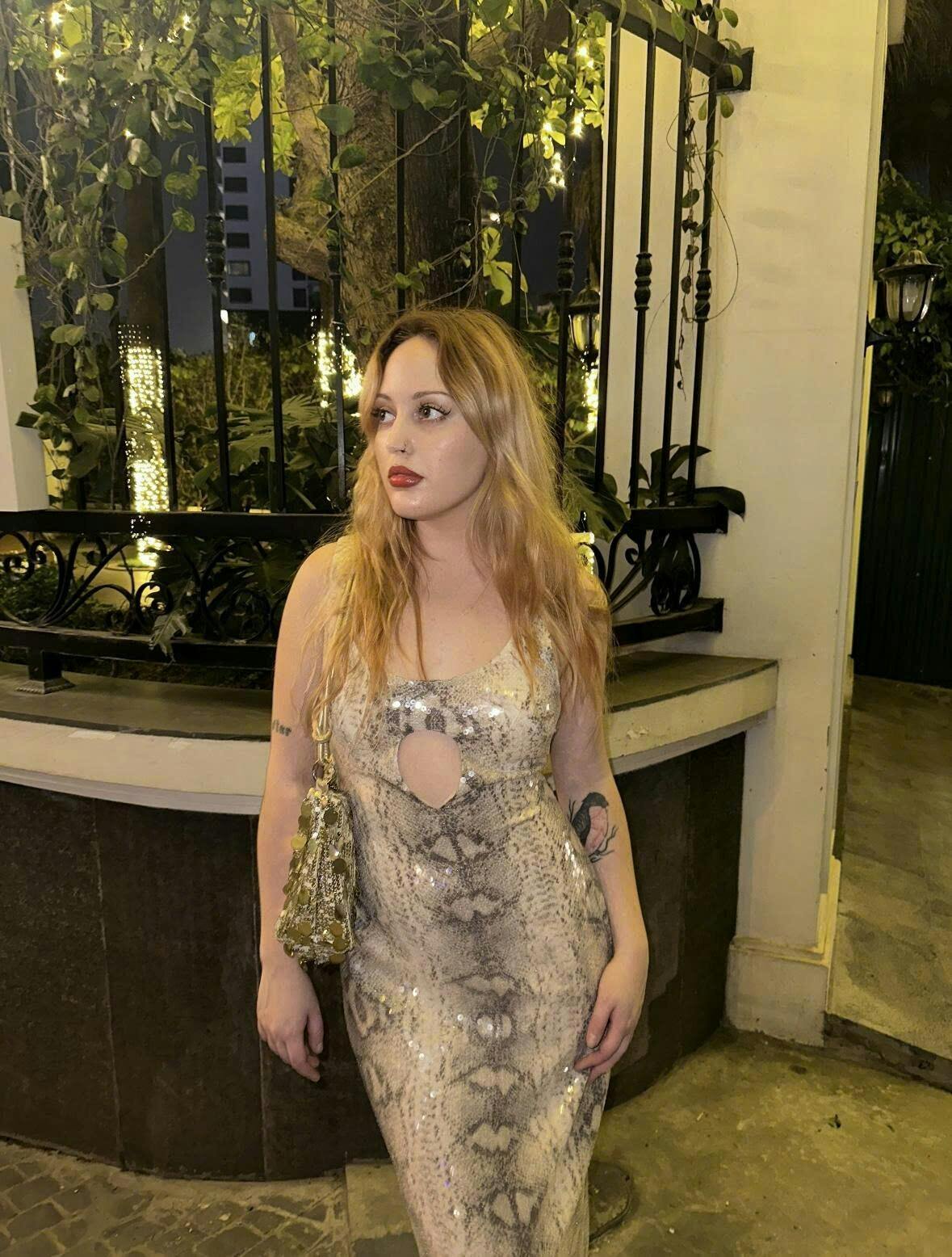 I was afraid a sequin dress might feel stiff, but this one is lightweight and so easy to wear. The cut makes it flattering, and the snake is impressive.